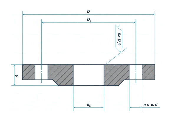 плоский фланец из стали 12Х18Н10Т, изготовленный по ГОСТу 33259-15 в исполнении F. Номинальный диаметр фланца — 600 мм. Номинальное рабочее давление — 16 кгс/см².